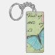 Blue-Winged Butterfly on Teal Postcard Keychain