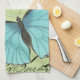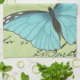 Blue-Winged Butterfly on Teal Postcard Kitchen Towel