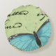 Blue-Winged Butterfly on Teal Postcard Round Pillow