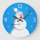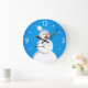 Blue Winter Happy Snowman Large Clock