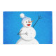 Cute snowman placemat with an illustration of a happy snowman singing on vibrant blue background. Snow is falling and snowflakes are everywhere, happiness around. This happy snowman design is cheerful and lovely and perfect for winter holidays gifts such as Christmas.