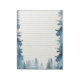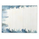 This blue winter pine trees lined notepad features a delicate hand-painted watercolor border of snow dusted evergreens in soothing shades of blue. The tranquil woodland design creates a peaceful, wintry atmosphere, perfect for letter writing, note-taking, to do lists, or sending seasonal messages. Its soft lined pages make it both beautiful and practical for organizing thoughts and sharing warm wishes during the holiday season.