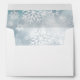 This design features a soft bokeh blue sky highlighting a snowfall on a bed on white. This design is part of the Blue Winter Snow Modern Wedding Suite Collection.
