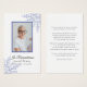 Thank your guests for attending the Celebration of Life Service of your departed with the pretty Elegant Blue Winter Snowflakes Funeral Memorial Prayer / Poem Card. Personalize it with a photo, your own message, poem or prayer on the back. This classy custom wintery death tribute card features intricate blue snowflakes adorning the corners with a white background.