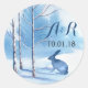 Blue Winter Winter Trees Monogram Wedding Classic Round Sticker