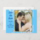 Blue Background with Diamonds and Gold Frame Bride and Groom to Be Save the Date Postcard. Convert this card for any occasion: anniversary, birthday, etc. Personalize this template with your photo and information.