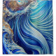 Blue with Gold Abstract Ocean Waves Artwork Shower Curtain