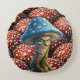 Blue wizard, mushroom whimsical forest fantasy round pillow