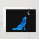 The wolf howling at the moon is an iconic North American image. This design features a blue fractalized wolf howling at a crescent moon.