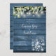 Blue Wood Greenery Mason Jar String Lights Wedding Invitation