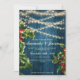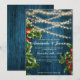 Festive Rustic Blue Wood Lights Berries Christmas wedding Invitation . This enchanting invitation captures the spirit of the holiday season while adding a touch of rustic charm. This invitation features a beautiful blue wood background that evokes a sense of warmth and coziness.