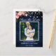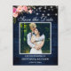 Blue Wood Lights Pink Floral Photo Save the Date Postcard