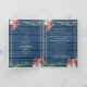 A beautiful design with navy blue wood grain texture background, vintage roses with blush pink and burgundy shades, hanging greenery framed with an elegant gold frame. A country style welcome wedding order of service program with floral, rustic wood, gold accents ideal for any themed wedding. Matching wedding invitations and other stationery items are also available.