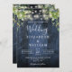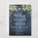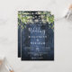 Blue Wood String Lights Greenery QR Code Wedding Invitation