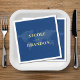 Dark blue and yellow world map round wedding napkins for a destination wedding.