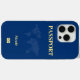 Blue and yellow passport phone case with world map. Personalize it with your name. Great for a pilot, a vacation or a frequent traveler.