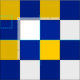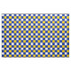Fabric with seamless blue, yellow and white checkered pattern in colours of flag of Bosnia