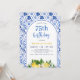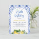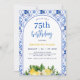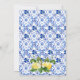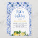 Mostly blue and white Mediterranean tile and lemon birthday invitation also featuring an arch.