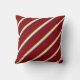 This throw pillow design features a blue, yellow, beige, and dark red colored striped pattern.