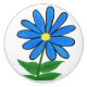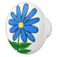 Blue daisy with yellow center and green leaves. Spring and summertime fun. Crisp white background. Original Artwork © TamiraZDesigns.