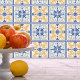 Freshen up your space with this beautiful wallpaper featuring a pattern of blue and yellow faux tiles. Perfect for a kitchen backsplash, bathroom and more.