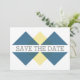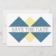 Modern and chic Geometric Triad Save the Date Announcement featuring a stylish triangle design in dark blue and yellow. Easy to customize, this simple yet elegant design may be personalized with your wedding details. Click "Customize It" to find more personalization options.