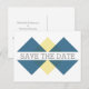 Modern and chic Geometric Triad Save the Date Postcard featuring a stylish triangle design in dark blue and yellow. Easy to customize, this simple yet elegant design may be personalized with your wedding details. Click "Customize It" to find more personalization options.