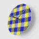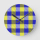Blue Yellow Gingham Check Design Round Clock