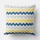 Elegant and modern dark navy blue, lemon yellow, grey and white retro chevron zigzags stripes vintage pattern decorative throw pillow. Fully customizable, add your own text or photo for a truly unique home decor item.