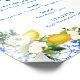 Mediterranean tile and floral lemon themed bridal shower bar menu featuring some lemons, white roses, blue and white tiles and a decorative frame.