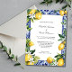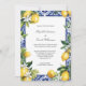 Pretty yellow lemons with blue and white Mediterranean tiles and white florals Wedding invitation. See our Lemon Mediterranean Blue White Tile Italian Wedding Suite for matching products. All fields are editable to add your information.
