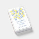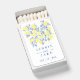 This elegant wedding matchbox favor features a sophisticated lithograph-style design with blue and yellow lemon vines. Perfect for Mediterranean, Italian, or vineyard-themed weddings, these custom matchboxes add a stylish touch to your wedding reception or event. A charming and practical keepsake for guests to take home and remember your special day.