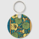 Blue Yellow Nasturtium Flower Nouveau Pattern Keychain