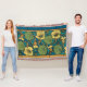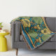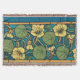 Blue Yellow Nasturtium Flower Nouveau Pattern Throw Blanket