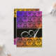 BLUE YELLOW PURPLE BLACK DAMASK MONOGRAM ,white Invitation