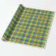 Wrapping Paper: Rustic gifts wrapping paper featuring yellow and blue plaid pattern laced with red, black colours. Tartan inspired by Ukraine colours.