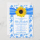 Blue Yellow Sunflower Damask First Communion Invitation