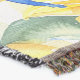 A quality printed throw has its advantages. This is a much finer weave throw than its loopier cousins, and though lighter, it is worth the investment for custom room accessorizing. The back is much prettier than the typical brown, and the fringe on the long sides very vivid, the selvage nicely done. Before photographing, I washed the throw in cold water, delicate, with a thicker woven throw the same size. On tumble dry low, this throw was dry in half the time as the other. This is a very practical quality if you use throws for furniture covers or to wrap up in frequently. The sleekness of the fabric makes it a great layer for accenting or protecting without the feeling of sitting on too much stuff. Perfect for napping or when you feel a light chill coming on. The color printing is beautiful and on this fabric, matched the design and color of my Photoshop image. This is an advantage for blending room fabrics and colors. The fringe on the short sides prints the colors from the design image and therefore varies from the side fringe. I streaked a white fractal line through the plaid pattern to give the illusion of weaving. This printed as crisp as an illusory thread, and put some white in the short side fringe, showing another advantage of print vs loomed- for artistic purposes, line lines, detail, and color integrity can be planned and preserved. My loomed throws have color limitations and more of a needlepoint texture. Print throws reproduce an exact image. The throw felt a little stiff straight out of the package, but this went away in the first delicate wash. Of course I searched the wash water for ink or bleeding and there was none.