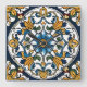 Blue Yellow White Black Azuleju Spanish Moroccan Square Wall Clock
