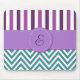 Blue Zigzag, Chevron, Purple Stripes, Monogram Mouse Pad