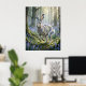 A swift bluebell hare pauses mid-step in a dreamy woodland clearing where elegance meets seasonal bloom. Realistic hare anatomy blends with bluebell flowers, slender stems, soft foliage, and flowing fur textures across the ears, shoulders, back, and tail. Mossy roots, silver mist, filtered sunlight, drifting petals, and layered forest depth create a peaceful enchanted setting. This premium fantasy wildlife design adds softness to bedrooms, nurseries, cottages, or gift collections. Perfect for hare lovers, spring decor fans, and woodland nature interiors.