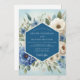 Embrace a serene and elegant aesthetic with this painterly floral design. A beautiful composition of bluebell and cornflower hued blossoms pairs with creamy ivory roses and soft sage greenery. The delicate watercolor artistry creates a dreamy and sophisticated atmosphere perfect for a romantic union.