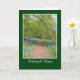 A pretty birthday card with 'Happy Birthday' in Welsh, and a photograph of a path through a beautiful bluebell wood in Monmouthshire, Wales.