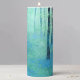 Landscape painting of a woodland in springtime covered with bluebell flowers. Peaceful and calm in blue and green,
