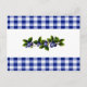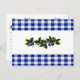 This Blueberries Recipe Card features mouse drawn blueberries and leaves on a blue and white gingham background.