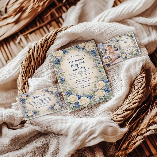 Blueberry Berry Botanical 1st Birthday Invitation