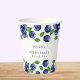 Simple and elegant Berry First Birthday watercolor blueberries personalized paper cups. Designed and illustrated with love by Kristine Lee Designs www.kristineleedesigns.com