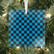 Blue and black checkerboard pattern with evenly spaced squares. The image conveys a sense of order and symmetry, with a vibrant color contrast.