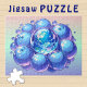 Relaxing Puzzle - Cosmic Blueberry Earth Planet comic book style aesthetic Design - This fantasy soft pastel Image is ai generated and shows a bunch of Blueberries, in the middle is the blue planet Earth. The main colors are different shades of blue, violet, hues of light pink, lilac and green.