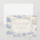 A sweet vintage-inspired design featuring delicate blue bows, soft striped detailing, and charming blueberry garden illustrations. Toile-style artwork with adorable animals and fruit baskets creates a classic storybook feel in a soft powder blue palette. The ornate central frame adds elegance while keeping the overall look light, refined, and timeless. Perfect for a baby shower with a gentle garden theme and a touch of traditional charm.